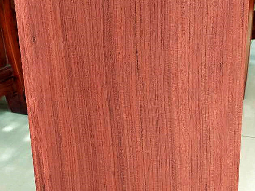 大喬木,高24~30M,直徑1.0M以上;具較大板根。本屬15種,分布于熱帶非洲,其中非洲有11種。只要從喀麥隆、赤道幾內(nèi)亞、加蓬進(jìn)口,量較大。宏觀特征:散孔材。心材紅褐色,常具深色條紋,與邊材區(qū)別明顯。邊材奶油色,寬2~8cm。生長輪略明顯。界以輪界薄壁組織外,皮呈圓形小鱗片狀脫落,脫落后殘留卵圓形淺凹坑。樹皮受傷后會流出紅色膠質(zhì)。管孔稀少,不大。心材紅褐色帶紫色條紋。 木材材性具光澤;略具酸味。紋理直至略交錯;結(jié)構(gòu)細(xì)而均勻;質(zhì)量硬;強(qiáng)度高;干縮大。加工容易,刨切、車旋、握釘、油漆以及膠黏性能均好。耐腐,抗白蟻。干燥較快,無缺陷。氣干密度0.88~1.10g/cm3。 木材用途適用于豪華家具、刨切薄木、細(xì)木工、裝飾單板、地板、雕刻、生活器具等。